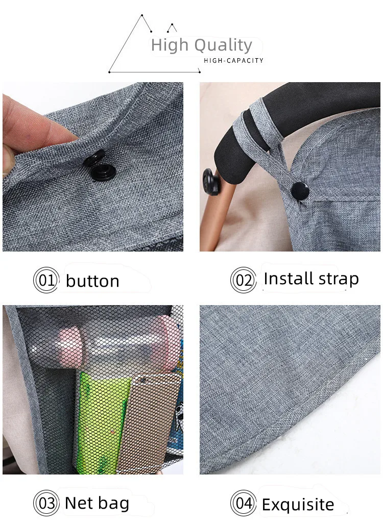 Sac de Rangement pour Poussette de Bébé, Grands Sacs Portables, Parapluie, Poche Porte-Gobelet, Accessoire Utile Universel – gray